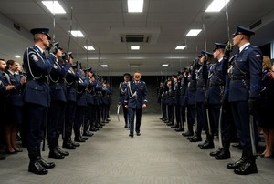 Uroczyste przywitanie nadinspektora Artura Bednarka w KWP w Krakowie