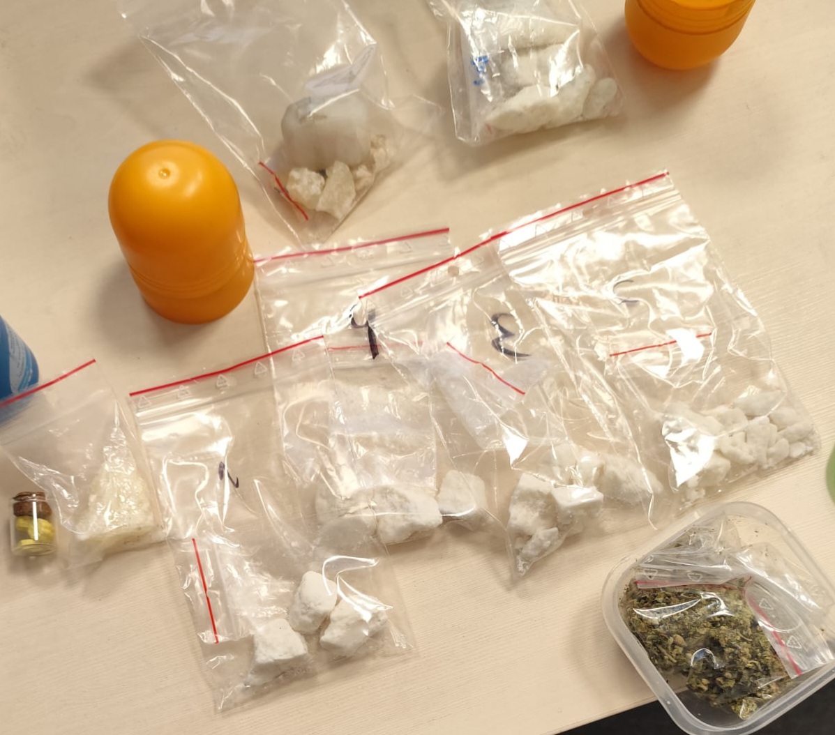 W toku dalszych czynności, wadowiccy kryminalni ustalili, że z włamaniem do kontenera z fajerwerkami z ubiegłego roku, miał związek również inny mężczyzna tj. 47-letni mieszkaniec Wadowic. Został on zatrzymany 4 lutego br. w swoim miejscu zamieszkania, gdzie podczas przeszukania policjanci ujawnili część skradzionych fajerwerków oraz znaczne ilości narkotyków. Funkcjonariusze zabezpieczyli łącznie 164 gramy zabronionych substancji, w tym mefedron, amfetaminę i marihuanę. Mężczyzna został zatrzymany.