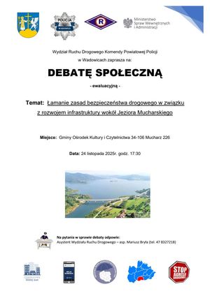 Policjanci z wadowickiej komendy zapraszają na debatę społeczną, która odbędzie się 24 listopada br. o godz. 17.30 w Gminnym Ośrodku Kultury i Czytelnictwa w Mucharzu.
